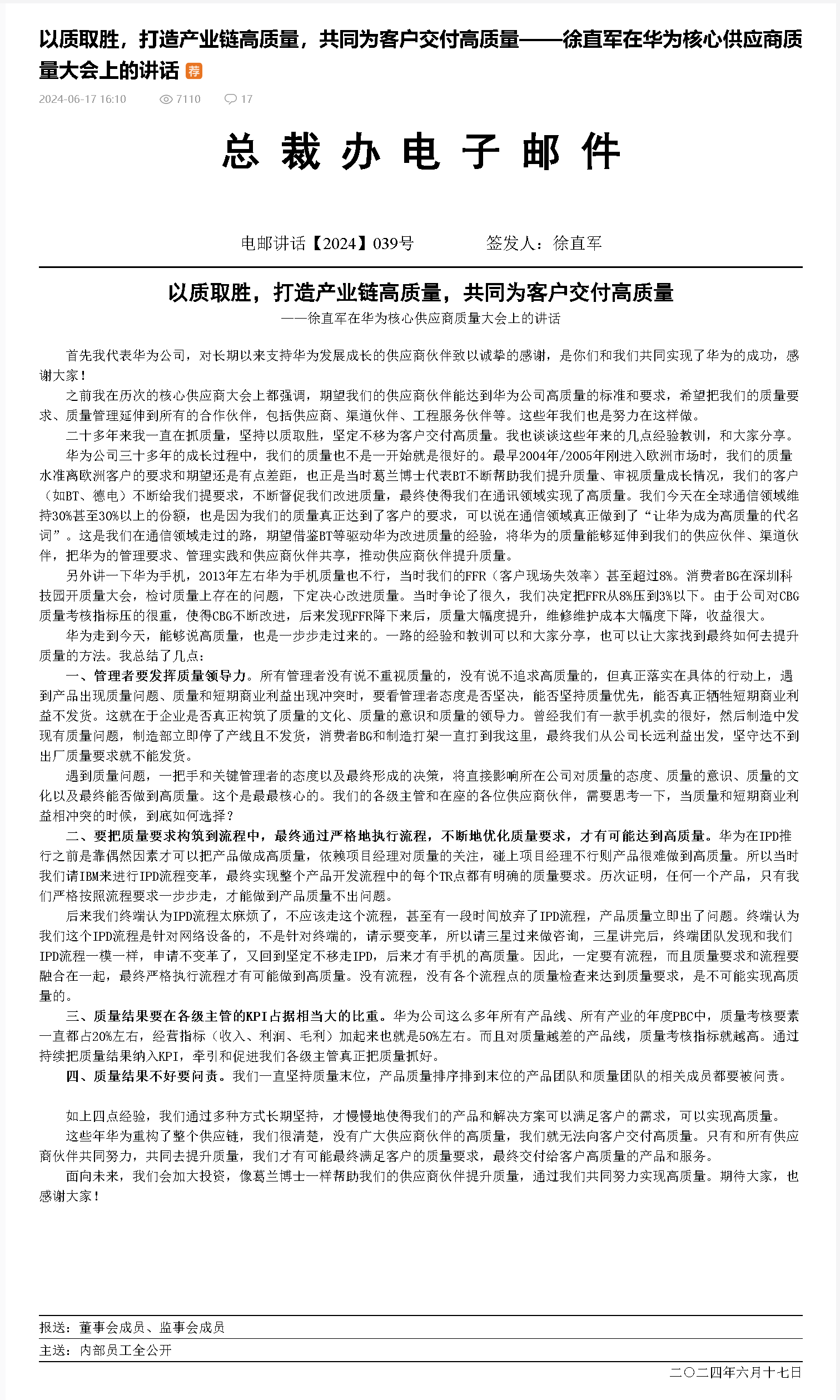 國(guó)事就是家事,家事服從國(guó)事,這就是華為心聲社區(qū)和華為家事的大格局。